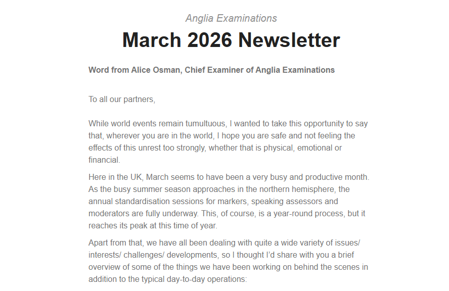 ΕΚΔΗΛΩΣΗ ΒΡΑΒΕΥΣΗΣ ΦΡΟΝΤΙΣΤΗΡΙΩΝ ΚΑΙ ΜΑΘΗΤΩΝ 2026 – CAPSIS HOTEL Με ιδιαίτερη επιτυχία ολοκληρώθηκε η δεύτερη εκδήλωσή μας, η οποία πραγματοποιήθηκε στις 28 Φεβρουαρίου 2026 στο CAPSIS HOTEL στη Θεσσαλονίκη. Είχαμε την τιμή να φιλοξενήσουμε την κυρία Alice Osman, Chief Examiner of Anglia, η οποία με την παρουσία και τη συμμετοχή της προσέδωσε ξεχωριστή […]